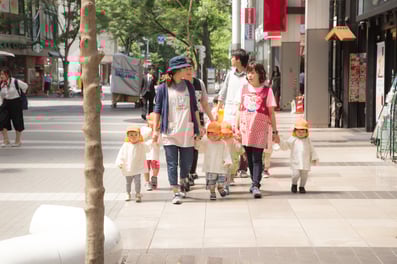 街中のいろんなイベントや催事にもじゃんじゃん参加します。時々電車に乗って熊本駅までいったりもします。お散歩に関しては完全に体育会系です。そんな毎日のお散歩を通して、子ども達が楽しく日々を過ごし心も体もたくましく育っていく姿を見られることが、スタッフの喜びでもあります。