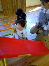 はしごの間から、ばぁ~と顔を出したHくんを見て、