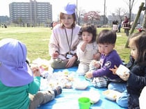 (ついでにご飯も食べようと、給食もピクニックバージョンで)