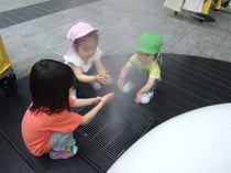 04日 6月 2012 涼しいお散歩♪ こんにちは(^0^)/ゆうこ先生です☆ 今日は蒸し暑かったですね~(汗) 今日は下通りをお散歩していると。。。 地面から白い煙がもくもく。。。 近寄ってみると。。。 ミストでした~!! さっそくピーキッズ達も ミストをまたいでみたり、手で掴もうとしたり。。。 涼しいお散歩になりました☆ Facebook に接続する tagPlaceholderカテゴリ: お散歩 コメントをお書きください コメント: 0