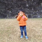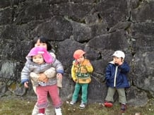 お散歩は、くまもん体操で準備運動してから熊本城石垣沿い遊歩道広場に行きました。