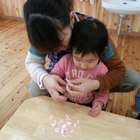 細長い紙テープを 『チョキンっ!!』不思議そうに見ていた子ども達。