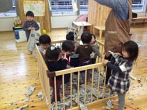 小さくちぎって囲いの中に入れ『雪』に見立て頭からぱっさ~と 降らせる遊び(#^.^#)