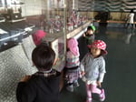 子どもたちも嬉しそう♪椅子に座らせてもらって働く人たちを見てから、