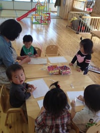 貼っていく遊びです。子どもたちに、『じゃーん!!』と