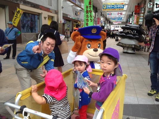 28日 4月 2014 北署の防犯イベントに参加しました お散歩に行くと、下通りでは北署の防犯イベントをやっていました! いつも着ぐるみにビクっとするこどもたちも、クマさんの着ぐるみは気に入ったようで みんなでクマさーん!と呼びかけていましたよ! 北署から「いかのおすし」と「はなのかおり」の防犯標語教わりました☆ tagPlaceholderカテゴリ: お散歩, 下通