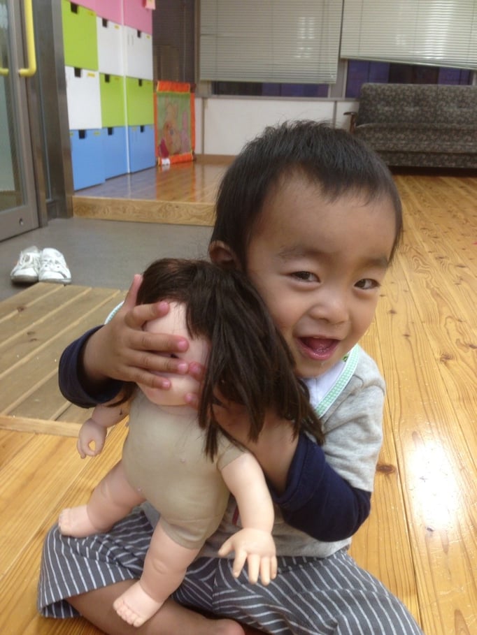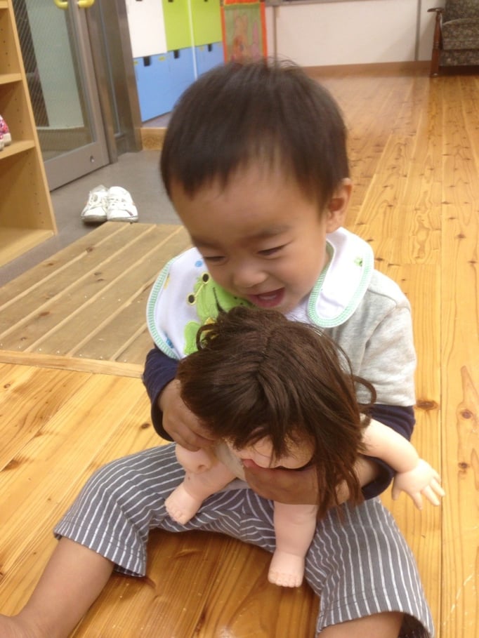 お人形を抱いて、ヨシヨシ♥ほのぼのとかわいいショットです!