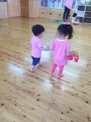 異年齢の2人ですが、園内を仲良く手をつないで5分ほどお散歩してました♥ほのぼのなりますね★