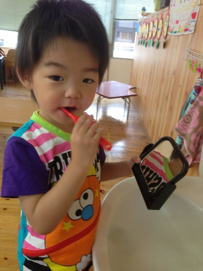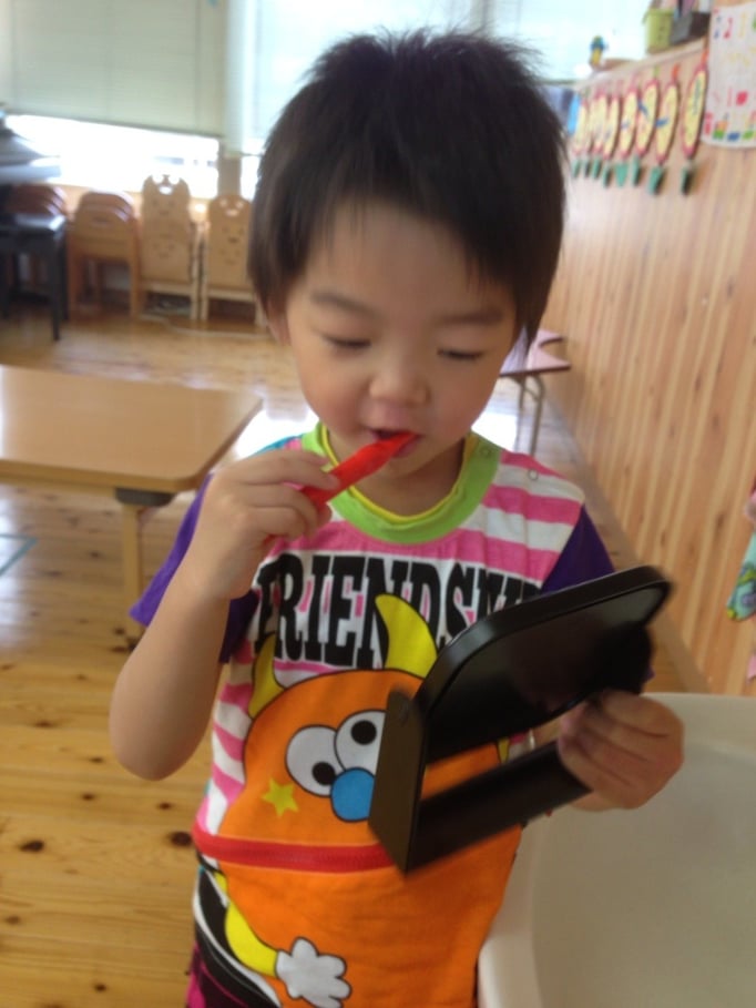 6月4日ムシ歯ゼロに向けて先週は、歯をたいせつにしよう★のパネルシアターで、歯のお勉強をしました(^○^)みんな『お家でゴシゴシするー!!』と、とてもはりきっていましたよ♥ぴーちゃんでは3歳(年少)以上のお子様に歯磨き習慣を取り入れていこうと思ってます(^○^)
