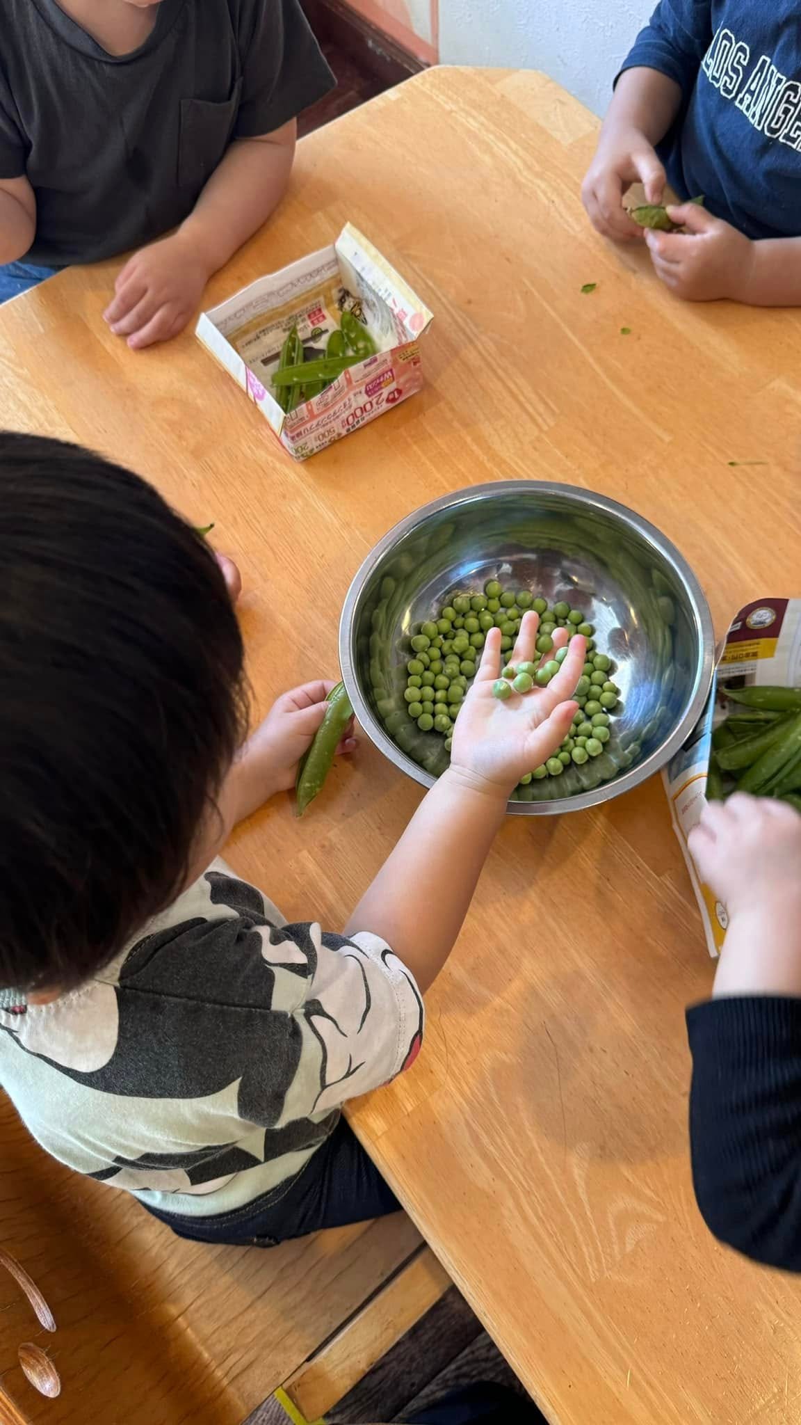 ぴーかーぶーでは給食の先生が、毎日子どもたちの顔を見ながら園内のキッチンで調理した出来立ての給食をご提供しています。献立は熊本市立保育園のものに準じており、栄養のバランスだけでなく、地元の旬な食材を中心に、様々な調理方法により多彩な味と食感を経験できるよう考慮されております。まるで大家族の食事の様な雰囲気の中で、何よりも一人ひとりが「食べることは楽しいことなんだ!」と感じられる環境づくりに努めております。